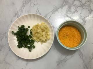 腌制虾的时候,把葱切小,准备好蒜蓉,。