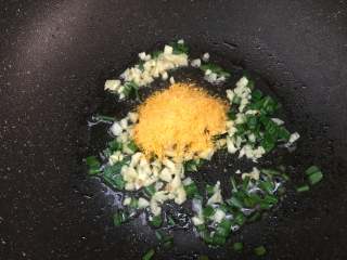 另起一锅,加入适量食用油,把、蒜蓉放入,稍微爆香。