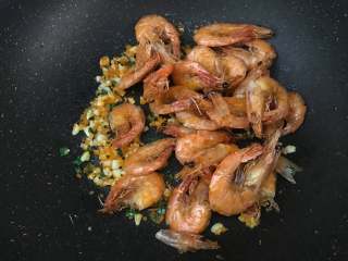 把炸好的虾倒入,翻炒均匀。