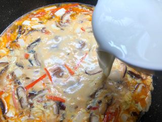 再倒入水淀粉,一边倒一边用筷子快速搅拌,把芡勾成自己喜欢的浓稠度即可。