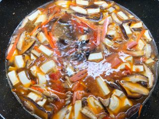 加入胡萝卜,火腿肠,豆腐煮3分钟,再加入2勺醋,1勺,适量,适量,调至自己喜欢的口味。