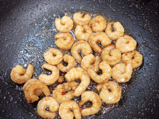 锅中倒入油,五成热时放入虾仁翻炒均匀。