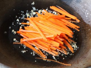 放入胡萝卜丝翻炒均匀;