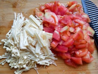 番茄去皮切块,切段。