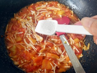 放入番茄,炒出汁。