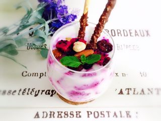 再倒入一层酸奶,取两三粒火龙果肉放上面
