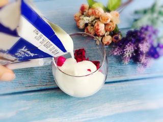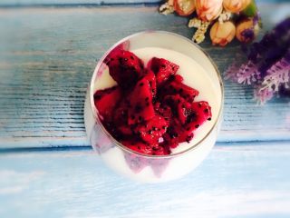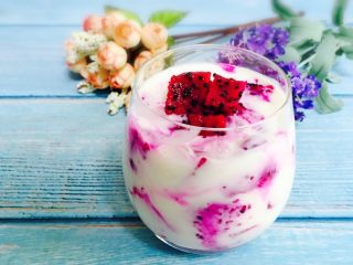 - 一层火龙果粒,一层酸奶依次填满玻璃杯