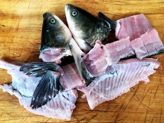 草鱼的两片大肉肉片下来再片去腹部的大鱼刺