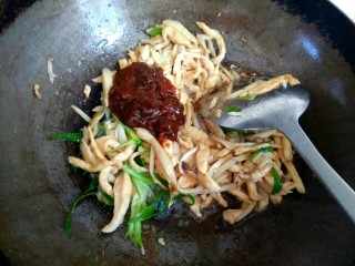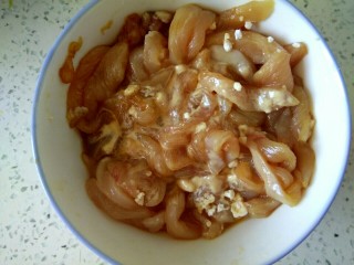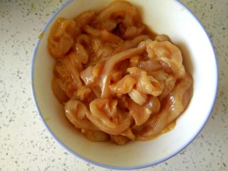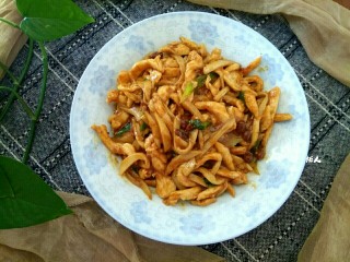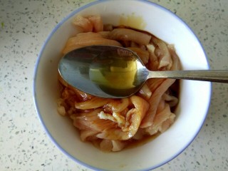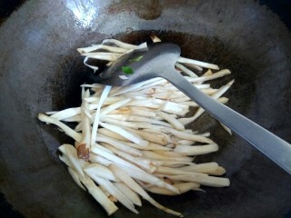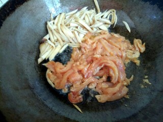 把杏鲍菇铲到一边,放入鸡肉翻炒
