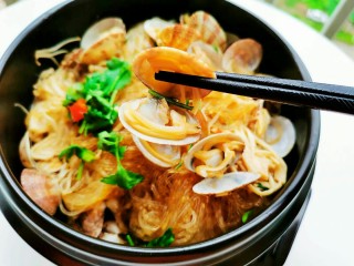 喜欢花甲的你,绝对不能错过这个花甲煲,用砂锅煲,放入金针菇,粉丝。吸足了汤汁,特别好吃入味。
