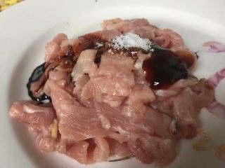 切片加入蚝油、老抽、和盐腌制一会儿