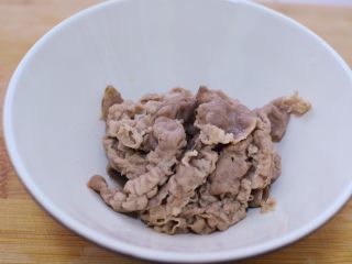 还是用锅里的沸水,焯。肥牛放进去立马关火,以免变老。