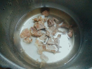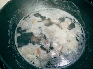 煮到排骨里的血沫浮起,捞出,洗掉血抹