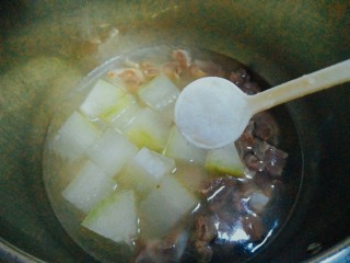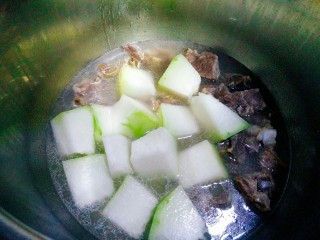 20分钟后关火,等排骨自然放气后,下冬瓜,再次盖上盖子压了5分钟