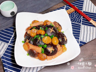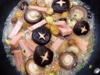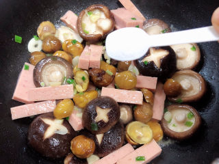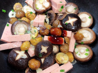 一盘色香味俱全的香菇板栗就做好了,撒上葱花点缀一下,颜值很能打哟!