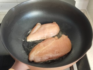 锅中热油,放入鸡胸肉