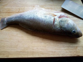 这是切好的形状,把鱼头切下,切鱼的时候手要注意,不要切到了手。