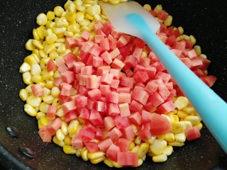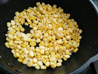 热锅烧油,放入玉米炒两分钟