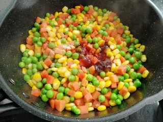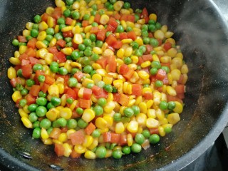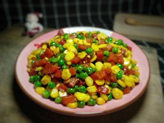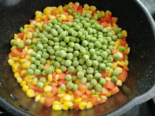 玉米,胡萝卜,碗豆都是非常有营养的蔬菜,搭配在一起颜色非常丰富