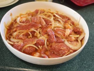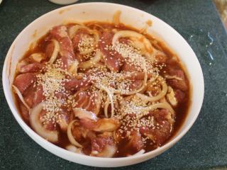 加入1-2大匙的。用其他辣椒酱代替也可,辣度则随人喜好调整。拌匀后就是韩式烧肉的酱汁。