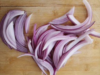 然后把洋葱切成条。