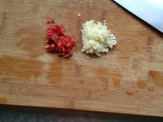 大蒜,辣椒切末备用