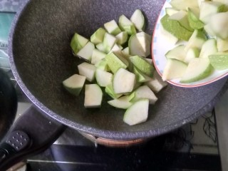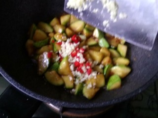 放入西葫芦块煸炒