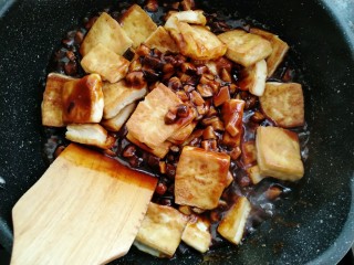 干香菇的香味浓郁焖煮煎好的金黄豆腐特别美味