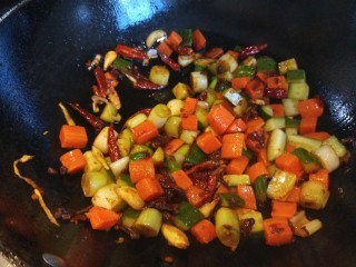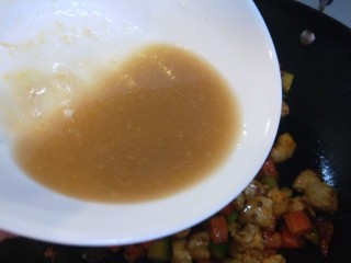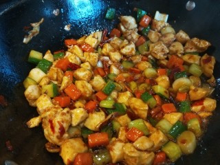 倒入鸡丁炒均匀。