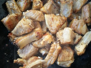 热锅凉油放入30克糖变咖啡色放入排骨