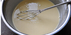 面粉、淀粉、少许盐和鸡蛋一起放进大碗,加入啤酒,搅拌成均匀细滑、略浓稠的炸糊