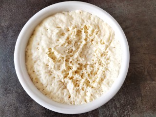 添加酵母水边搅成面穗状。