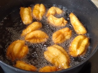 看一下特写,胖胖的小油条炸好。