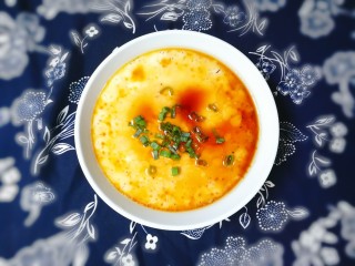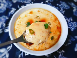 时间到了,取出鸡蛋羹,放入适量