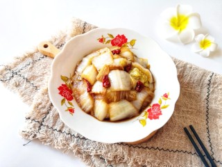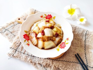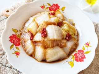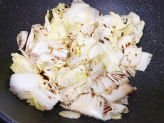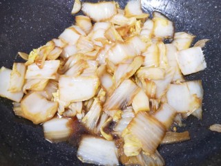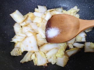 下入白菜心翻炒均匀。