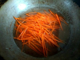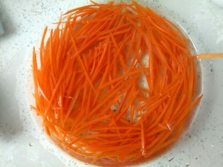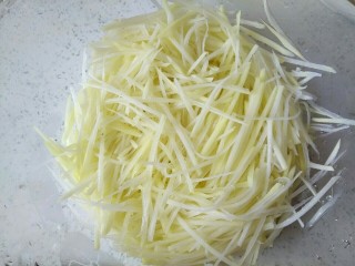 捞出放入清水中,多换几次冷水,使土豆丝迅速冷却,这样做出的土豆丝才清脆爽口