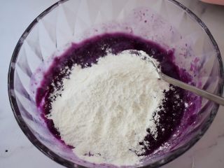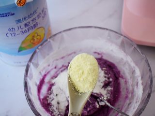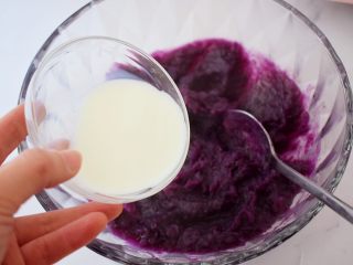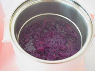 倒入容器中,用勺子把紫薯搅拌一下成泥状
