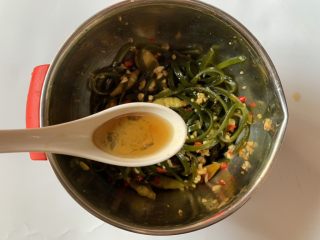 煮好的海带丝捞出,用冷水浸泡一下后沥水捞出
