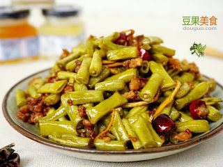 放入酸豆角翻炒,加入盐(看个人腌的豆角的咸度,看需不需要再放盐),鸡精,白糖,少许生抽,炒匀。