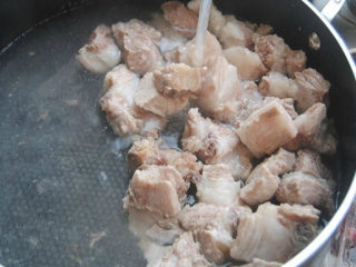排骨放入清水煮沸4分钟,冷水冲净血沫备用;