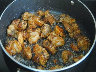 倒排骨加入料酒翻炒片刻,把、、、倒入翻炒均匀;
