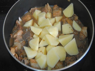开盖子放入土豆翻炒均匀,再盖上盖子焖煮10-15分钟即可;