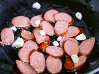 热锅热油,加入,加入大蒜爆香。
