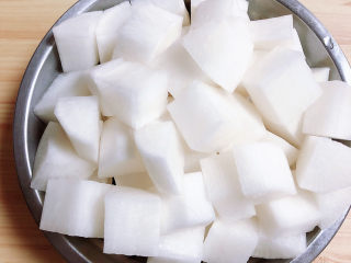 白萝卜切块儿待用。