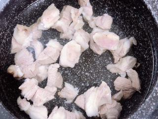 将羊肉放入砂锅中,放入1500ml水。盖盖儿,开大火煮开锅。