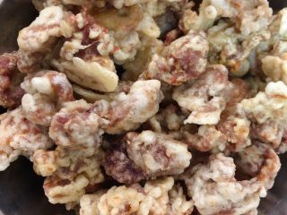 腌制好的肉片放面糊里滚一下,让每一个部位都沾上糊糊