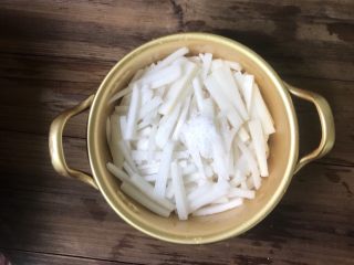 半个小时后将白萝卜“杀出”的水分倒在另一个碗里
