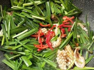 撒红椒丝,朝天椒粒,加少许。
