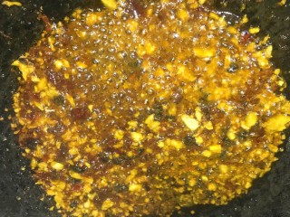 锅内油6成热后放入适量蒜末和3勺辣椒油爆香。