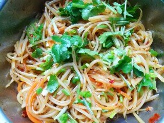 加入葱和香菜拌匀,放置十五分钟即可。